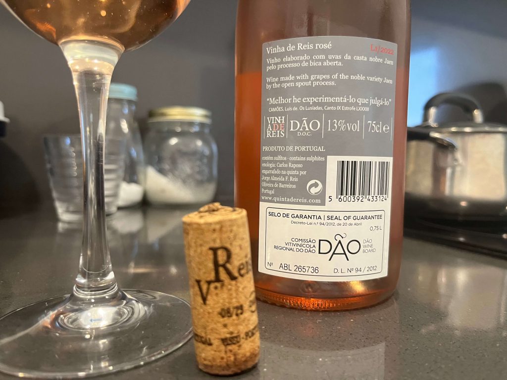 Bonito de cor, límpido, aromático, este Vinha De Reis 2022 Rosé levou-me da carteira 14,78 euros e contrariou essa ideia de que o Jaen, a solo, é coisa aguada ou de baixezas alcoólicas. Nada como provar, beber e tirar a teima.