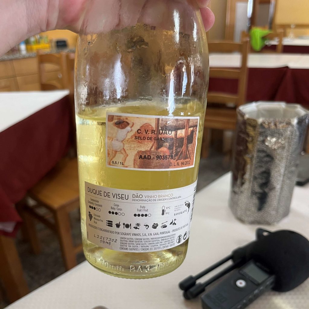Reunidos, alimentados a três cafés, o Nuno e a Lurdes levaram-me ao almoço. Ao rompão, um Cabriz e, na segunda botelha este fabuloso Duque de Viseu Branco 2021.