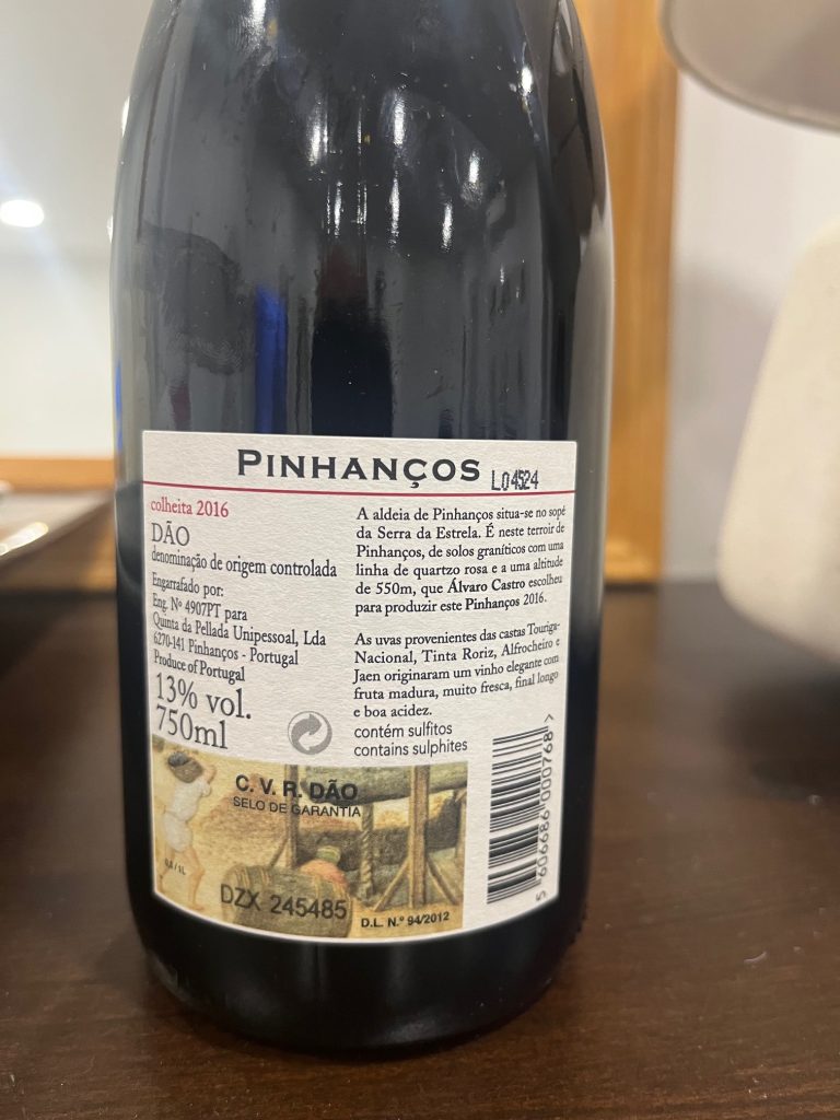 O Pinhanços é visto como excelente porta de entrada para o estilo do produtor, menos focado na madeira e mais na frescura e na identidade da terra. Em 2016, encontrei-o num momento fantástico para ser bebido: já teve tempo de acalmar na garrafa, mas a acidez característica do Dão mantém-no vivo. E duraria mais, não fora uma sede loquaz e o singelo prazer de ver a família reunida à mesa.
