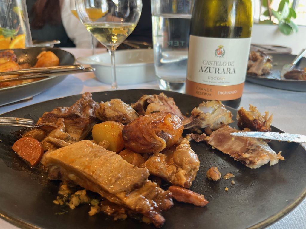 “Já estou com saudades”, comentava-me meu Primo no grupo de WhatsApp da família a propósito da reunião anual da Páscoa. De forma ausente, não houve tintos e apenas brancos, sobremodo Encruzado, muitos e bons. Meu primo diz que este é fenomenal, concordo, mas das botelhas que empinámos, confesso, coloco este em segundo das provas pascais. Do que me surpreendeu, falarei lá mais para diante que é preciso gerir o Armazém. Que me trouxe este, vindo das Terras de Azurara para adoçar um cabrito de forno, um chibo quase adulto esquecendo que ‘cabrito de mês leitão de três’?